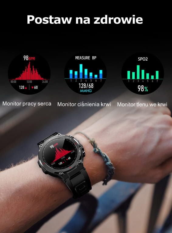 - Wysokiej jakości wyświetlacz cyfrowy IPS z pełnym dotykiem 1.28" cala o rozdzielczości 240 x 240 pikseli – dobra widoczność w słońcu.