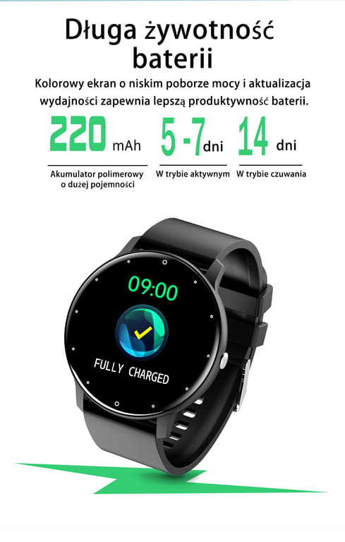 Zegarek Gravity GT1-2 współpracuje zarówno z systemem Android, jak i iOS, dzięki czemu łatwo połączysz go z dowolnym smartfonem za pomocą Bluetooth 5.0. Intuicyjne menu w języku polskim oraz przejrzysta aplikacja mobilna pozwalają w prosty sposób konfigurować wszystkie funkcje zegarka. Model zasilany jest akumulatorem o pojemności 220 mAh, który zapewnia długi czas pracy na jednym ładowaniu – nawet kilka dni intensywnego użytkowania bez konieczności ładowania.