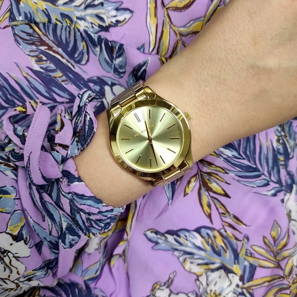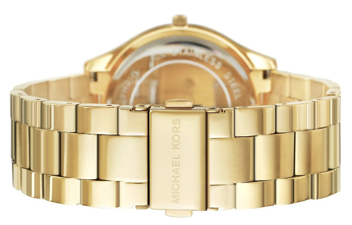 Zegarek damski Michael Kors MK3179 charakteryzuje się złotym wykończeniem, nadającym mu ekskluzywny i ponadczasowy wygląd.