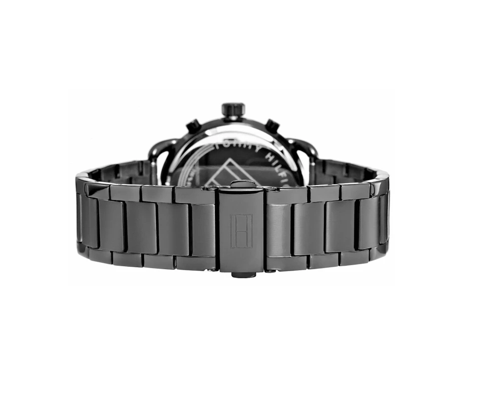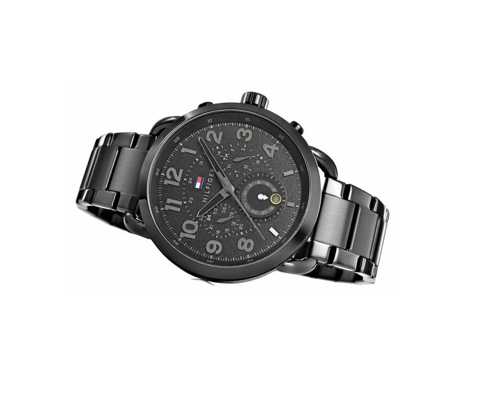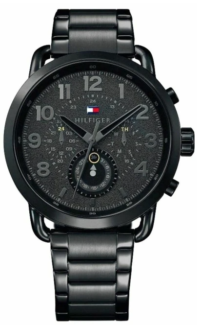 Zegarek męski Tommy Hilfiger 1791423 Briggs to stylowy męski zegarek, idealny zarówno do eleganckiego ubioru, jak i do noszenia na co dzień. Bransoletka oraz koperta wykonane zostały ze stali szlachetnej w kolorze czarnym. Na tarczy zabezpieczonej mineralnym szkłem znajdziemy datownik wskazujący dzień miesiąca oraz subtarcze będące wskazaniami dni tygodnia, aktualnej daty oraz 24h czasu dobowego. Klasa wodoszczelności czasomierza TH 1791423 to WR50, co gwarantuje szczelność zegarka w przypadku drobnych zachlapań.