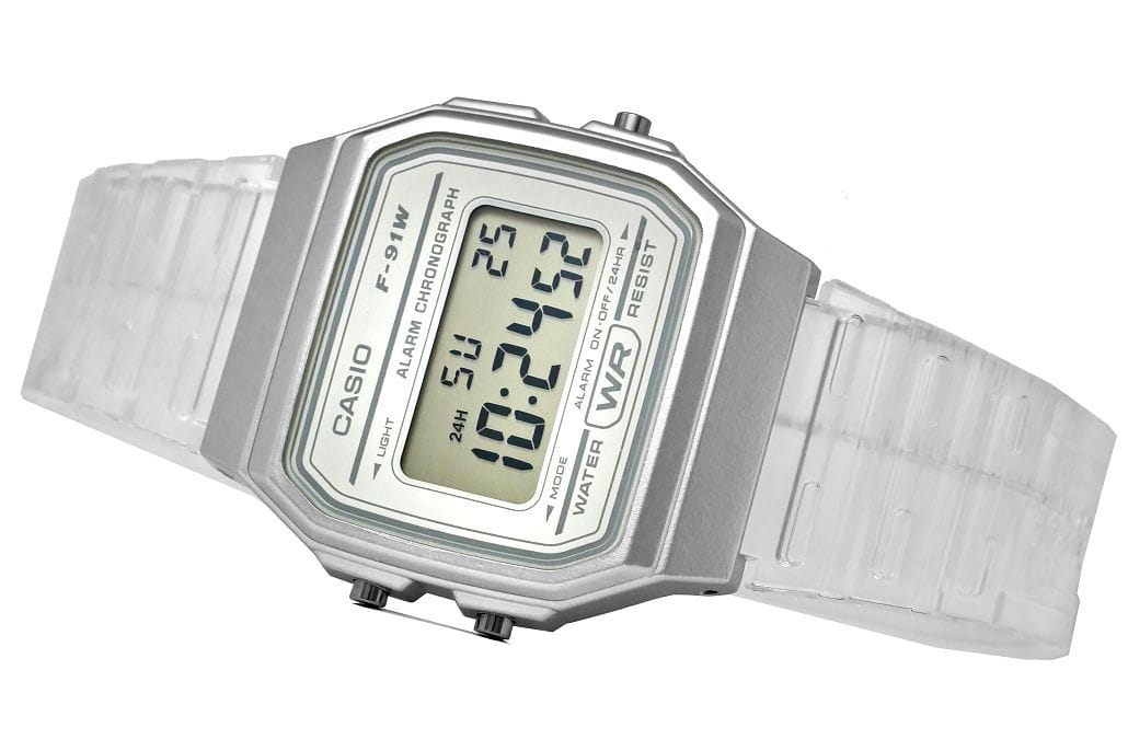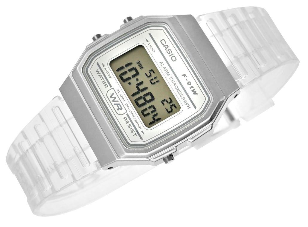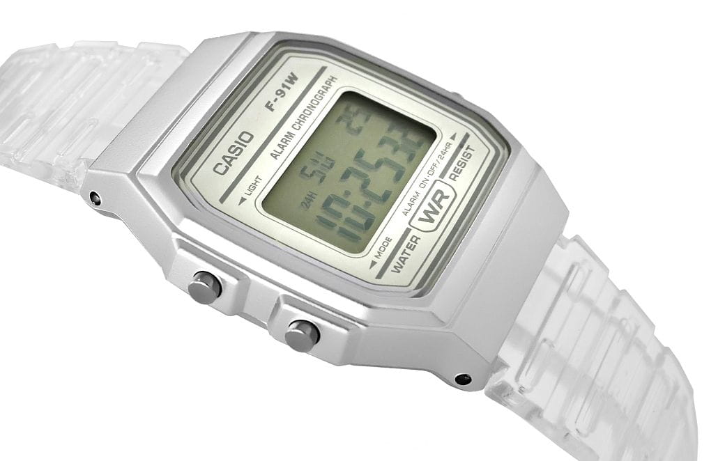- Tarcza: Kwarcowa. Alarm dzienny przypomina o wydarzeniach, które powtarzają się każdego dnia, emitując sygnał dźwiękowy; raz ustawiony zegarek zawsze wyświetla poprawną datę (pamięta o krótszych miesiącach); dokładność pomiaru do 1/100 sekundy, zakres pomiaru do 1 h; wbudowane podświetlenie z boku tarczy zegarka; można ustawić wyświetlanie czasu w formacie 12- lub 24-godzinnym. W trybie 12-godzinnym na wyświetlaczu w drugiej połowie doby, tzn. od godziny 12 do 23:59, obok godziny pojawia się literka p