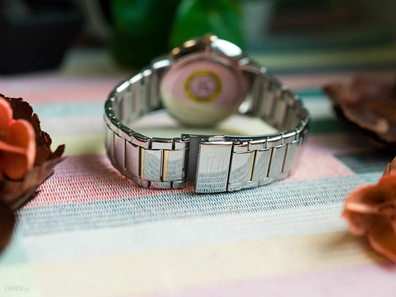 Klamra zegarka jest solidna i łatwa w obsłudze, zapewniając pewne trzymanie zegarka na nadgarstku.
