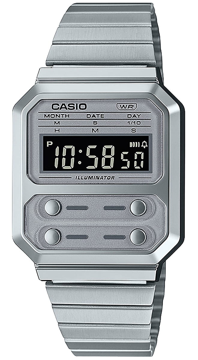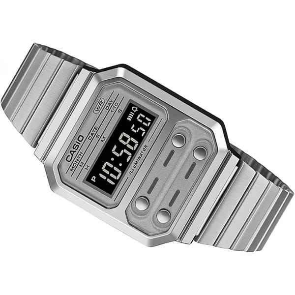 Zegarek męski CASIO A100WE-7BEF to seria zegarków, które łączą w sobie klasyczny design z nowoczesną funkcjonalnością. Model ten prezentuje się wyjątkowo elegancko dzięki srebrnej kopercie oraz prostokątnej tarczy LCD. Wyposażony w mechanizm kwarcowy zasilany baterią, zapewnia niezawodność oraz dokładność wskazań czasu.