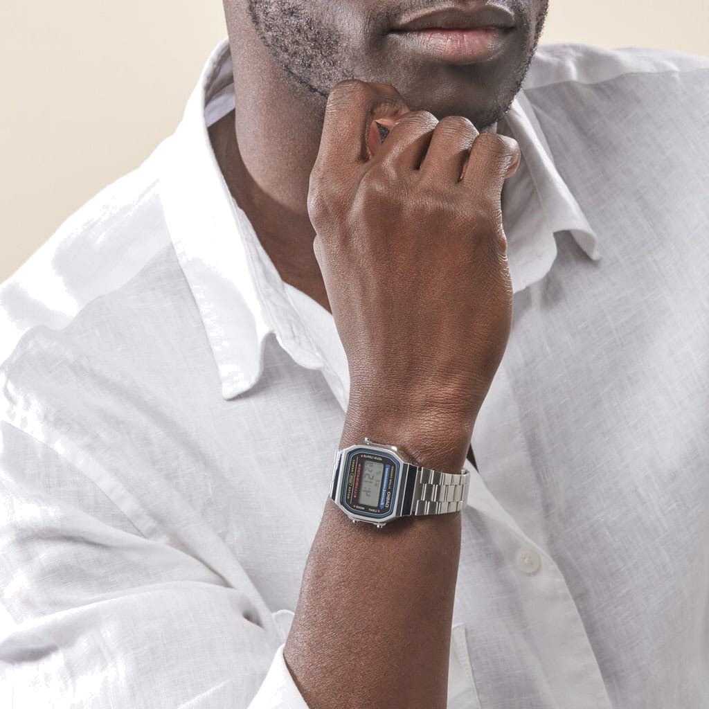 Zegarek Casio A168WA-1W to klasyczny i funkcjonalny czasomierz, idealny dla mężczyzn ceniących prostotę i nowoczesność.
