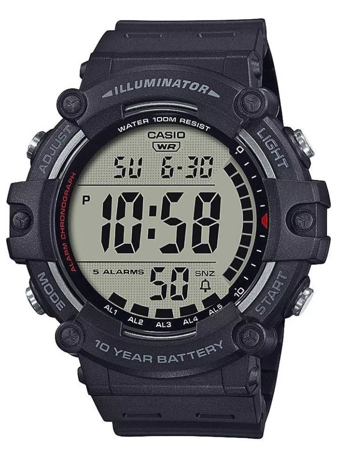 Zegarek męski Casio AE-1500WH-1A to połączenie niezawodności, funkcjonalności i nowoczesnego designu, idealne zarówno na co dzień, jak i do aktywnego trybu życia. Jego okrągła koperta wykonana z trwałego tworzywa sztucznego w kolorze czarnym zapewnia nie tylko solidność, ale także stylowy wygląd, który doskonale komponuje się z różnymi outfitami.