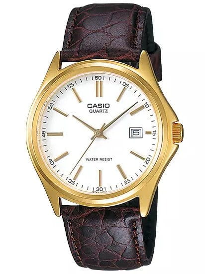Zegarek Casio MTP-1183Q 7ADF to połączenie elegancji i funkcjonalności, idealne dla nowoczesnego mężczyzny. Jego okrągła tarcza w kolorze białym, osadzona w złotej kopercie, tworzy wyrafinowany kontrast, który przyciąga uwagę i dodaje szyku każdej stylizacji.