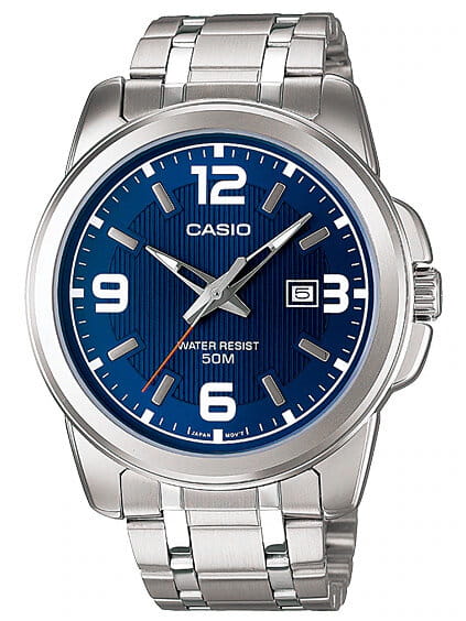 Marka Casio prezentuje zegarek męski o symbolu MTP-1314D 2AV, który łączy w sobie klasyczny design z niezawodną funkcjonalnością. Zegarek ten charakteryzuje okrągła tarcza w kolorze czarnym, która harmonijnie współgra z srebrną kopertą, nadając mu wyjątkowego wyglądu.