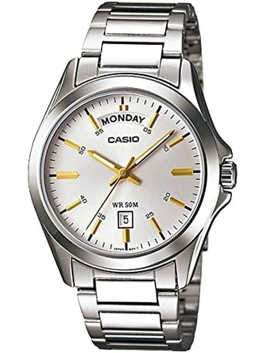 Zegarek Casio MTP-1370D-7A2V to doskonały wybór dla mężczyzn ceniących sobie elegancję i funkcjonalność. Jego okrągła tarcza w kolorze srebrnym harmonijnie komponuje się z srebrną kopertą i stalową bransoletą, tworząc minimalistyczny, a zarazem wyrafinowany design.