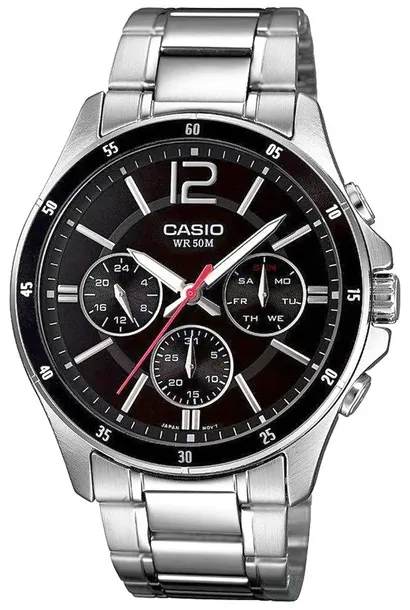 CASIO MTP-1374D-1AV to uniwersalny i elegancki model, który doskonale łączy klasyczny styl z funkcjonalnością, odpowiadając na potrzeby współczesnego mężczyzny. Zaprojektowany z myślą o codziennym użytkowaniu, sprawdzi się zarówno jako uzupełnienie stroju biurowego, jak i dodatek do mniej formalnych stylizacji. Srebrna koperta w połączeniu z dopracowaną tarczą i praktycznymi funkcjami tworzy spójną całość, która przyciąga wzrok i budzi zaufanie do precyzyjnego wykonania. To propozycja dla tych, którzy cenią sobie niezawodność, estetykę i ponadczasowy design w jednym.