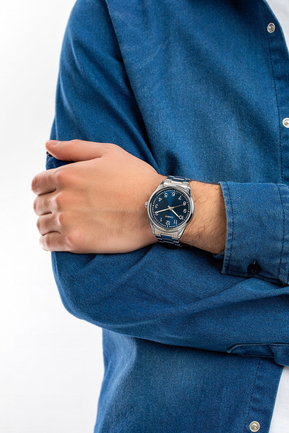 Zegarek Casio MTP-V005D-2B4 doskonale sprawdzi się zarówno podczas spotkań biznesowych, jak i na co dzień, dodając męskiej stylizacji wyrafinowanego akcentu.