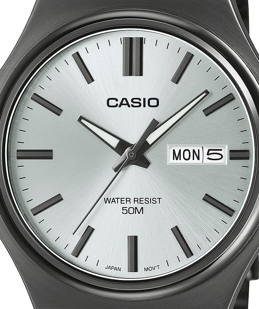 Zegarek męski Casio MTP-E735B-7A to stylowa propozycja dla mężczyzn, którzy cenią elegancję, minimalizm i wysoką jakość wykonania. Połączenie grafitowej koperty i bransolety z srebrną tarczą nadaje mu nowoczesnego charakteru, który świetnie komponuje się zarówno z formalnym garniturem, jak i codziennym ubiorem. To model, który łączy w sobie klasyczny wygląd z subtelnym sportowym akcentem, doskonale wpisując się w filozofię marki Casio – prostota, funkcjonalność i niezawodność.