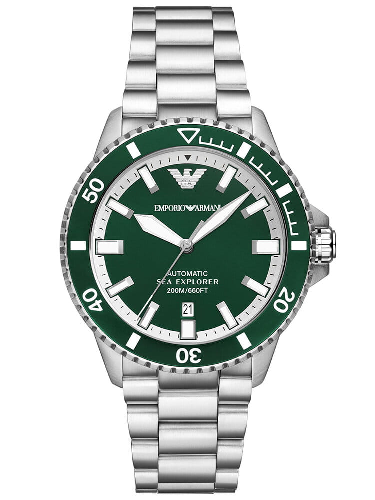 Emporio Armani AR60080 to model, który doskonale łączy nowoczesny styl, wysoką funkcjonalność i luksusowe detale. Stworzony dla mężczyzn, którzy oczekują zarówno precyzji, jak i wyjątkowego designu, ten czasomierz wyróżnia się solidną stalową konstrukcją, automatycznym mechanizmem oraz wysoką wodoszczelnością na poziomie 200 metrów. Jego zielona tarcza w połączeniu z klasycznym, srebrnym wykończeniem sprawia, że jest to propozycja zarówno na co dzień, jak i na bardziej wymagające okazje.