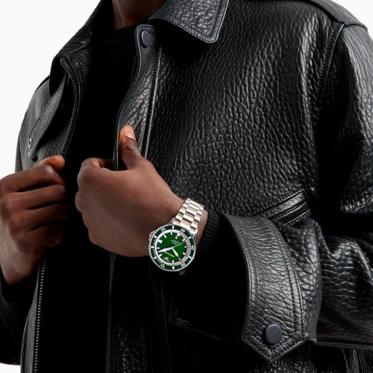 Głęboka zielona tarcza nadaje zegarkowi unikalnego charakteru. Minimalistyczne indeksy i wyraziste wskazówki zapewniają doskonałą czytelność, a ich subtelne wykończenie dodaje prestiżowego akcentu. Design inspirowany sportową elegancją sprawia, że zegarek pasuje zarówno do formalnych stylizacji, jak i bardziej casualowych zestawów. Tarczę chroni wysokiej jakości mineralne szkło, odporne na codzienne użytkowanie i wpływ czynników zewnętrznych.