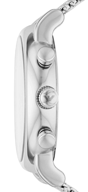 Srebrna bransoleta typu mesh zapewnia komfort noszenia i idealne dopasowanie do nadgarstka. Lekka, a zarazem wytrzymała konstrukcja sprawia, że zegarek doskonale leży na ręce, nie tracąc przy tym swojego eleganckiego charakteru. Dzięki uniwersalnym wymiarom – koperta 43 mm, grubość 12 mm i bransoleta 22 mm – model Emporio Armani Luigi pasuje do każdego nadgarstka i każdej stylizacji, dodając jej klasy i charakteru.