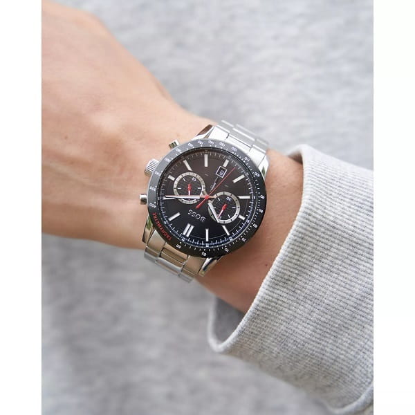 Zegarek Męski Hugo Boss 1513922 - Srebrny Design z Czarno-Czerwonym Akcentem
