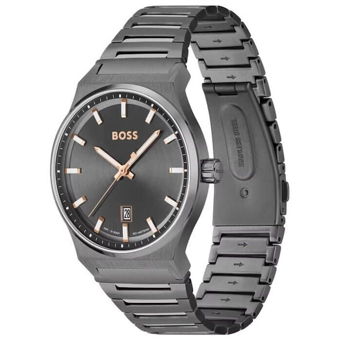 Hugo Boss 1514078 to klasyczna propozycja dla panów, którzy cenią sobie monochromatyczne rozwiązania w eleganckim wydaniu. Stworzony w ramach kolekcji Candor model ten został zaprojektowany z myślą o osobach, które szukają zegarka pasującego zarówno do garnituru, jak i mniej formalnego stroju. Jego grafitowa koperta o średnicy 41 mm w połączeniu z grafitową tarczą i bransoletą tworzy wyjątkowo harmonijny wizerunek, utrzymany w chłodnym, stonowanym klimacie. Całość cechuje się spokojnym, ale stanowczym charakterem, co czyni ten model idealnym uzupełnieniem stylu współczesnego mężczyzny.