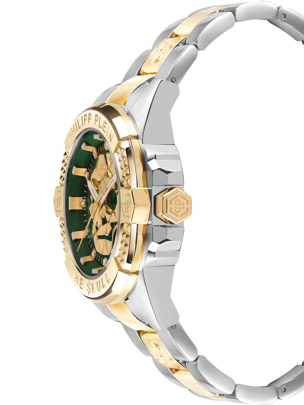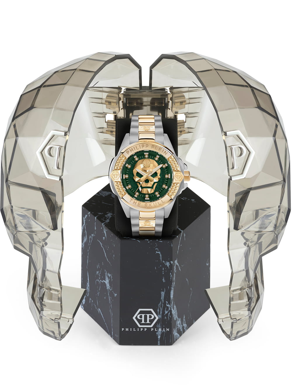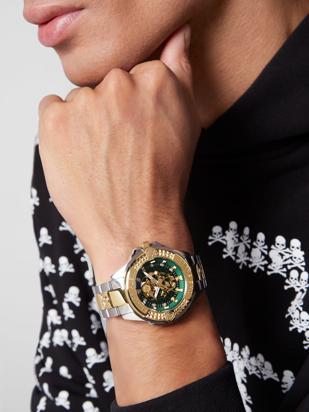 To propozycja dla osób, które poszukują nie tylko funkcjonalnego dodatku, ale również stylowego akcentu, który podkreśli ich osobowość. Połączenie złota, srebra, szarości i grafitu, elegancka tarcza w intensywnym odcieniu zieleni oraz luksusowe zdobienia sprawiają, że zegarek wyróżnia się na tle klasycznych modeli. Philipp Plein PWNAA0622 The Skull to nowoczesny luksus w najlepszym wydaniu, przeznaczony dla tych, którzy lubią przyciągać spojrzenia i podkreślać swój wyjątkowy styl poprzez ekskluzywne akcesoria.