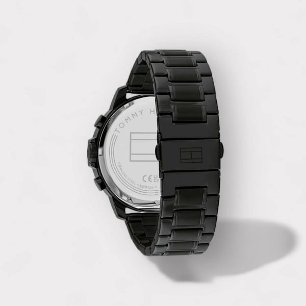 Koperta oraz bransoleta w kolorze czarnym wykonana z mocnej stali szlachetnej jest odporna na korozję, szkło mineralne na tarczy jest bardzo odporne na stłuczenia i zarysowania.