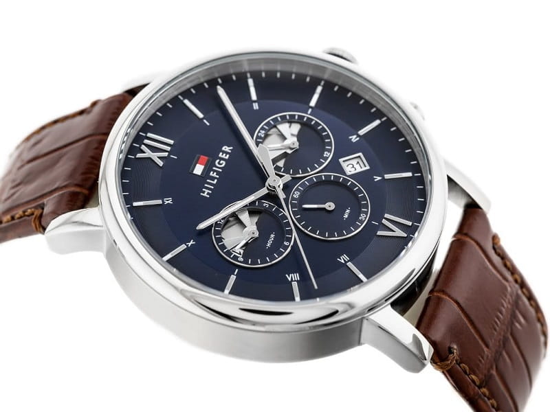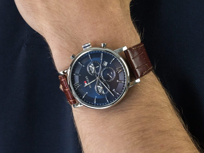Odkryj elegancję i klasykę zegarka męskiego Tommy Hilfiger 1710393, który łączy stylową granatową tarczę z elegancką brązową skórzaną bransoletą.