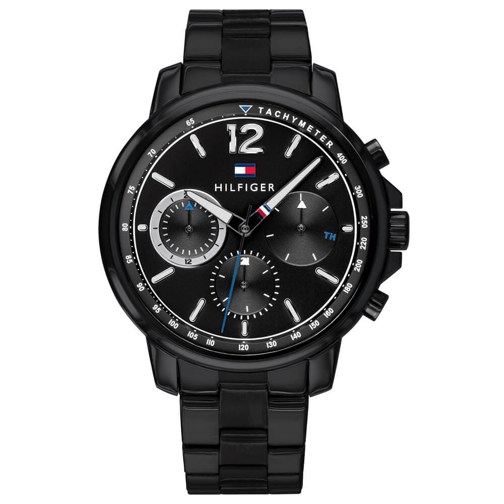 Zegarek męski TOMMY HILFIGER 1791529 model tego zegarka to doskonały wybór do codziennych oraz eleganckich stylizacji. Nowoczesny design daje szerokie pole manewru z kolorystyką i charakterem strojów, do których zostanie dobrany. Ten model posiada stylową kopertę w czarnym kolorze, do której dopasowana została czarna bransoleta. Tarcza w kolorze czarnym wykonana wysokiej klasy stali szlachetnej, odpornej na korozję. Urządzenie wyposażono dodatkowo w sub-tarcze czasu 24h, tachymetr oraz luminescencyjne wskazówki i indeksy, umożliwiające odczytanie godziny nawet nocą.