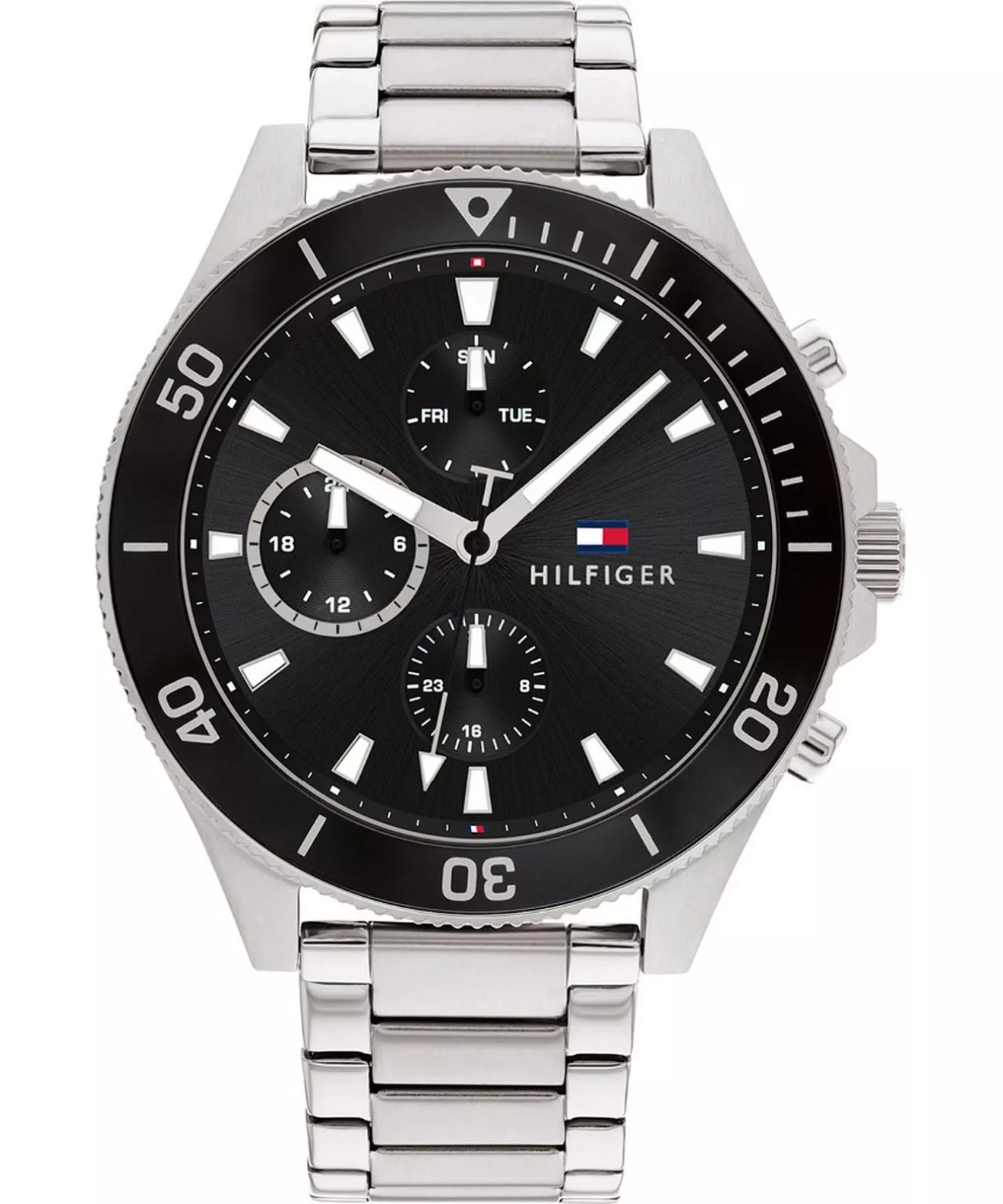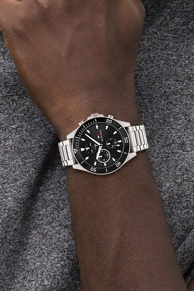 Tommy Hilfiger 1791916 – Męski Zegarek z Elegancką Srebrną Bransoletą i Czarną Tarczą